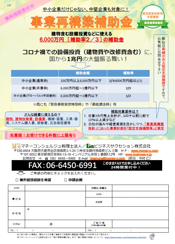 長引くコロナ禍で影響を受けた企業の事業再構築を支援すべく、10/28より公募がスタートしました。
