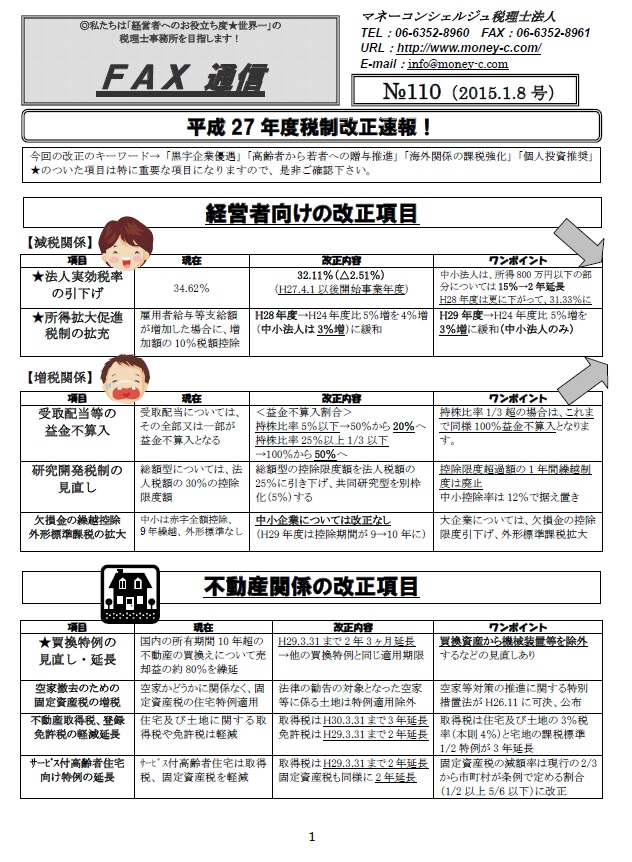 中小企業の経営者及び総務経理担当者・相続関係者向けに、「知って得する」「知らないと損する」税務情報を、メルマガ、FAX、冊子の3種類の媒体でお届け。