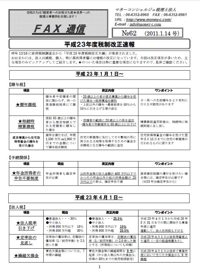 平成23年度税制改正速報