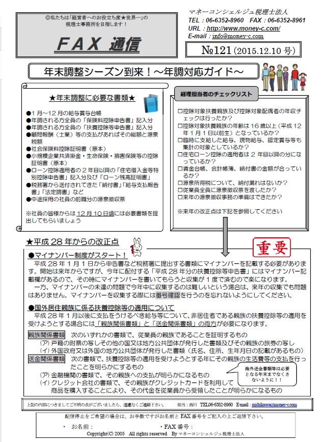 FAX通信№121