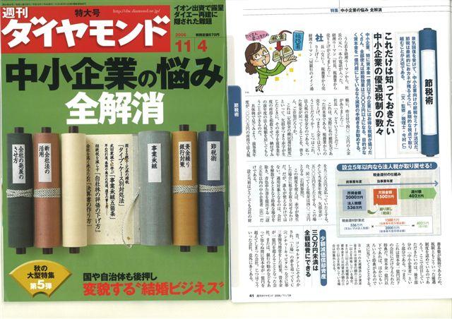 「中小企業の悩み全解消」 ⇒ 2005年10月8日号 「節税記事」はこちら 14ページ執筆しました。以下執筆内容の目次です。 |