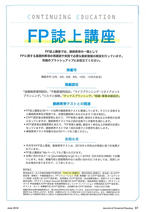 - FPジャーナル 2018年6月号 NPO法人日本FP協会刊 -