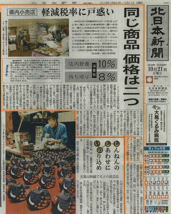 同じ商品、価格は二つ(消費税軽減税率導入) - 北日本新聞 2018年10月21日 -