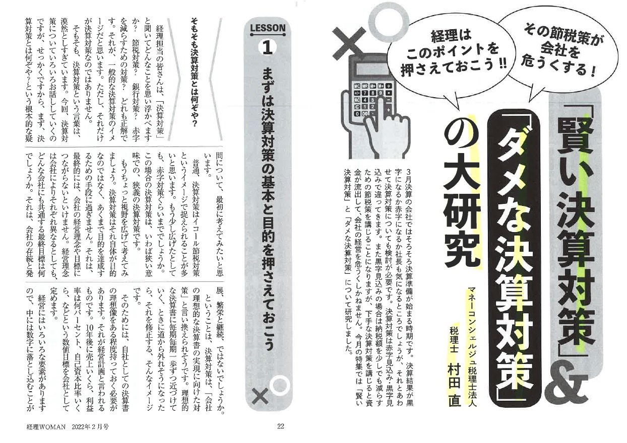 今月の特集では「賢い決算対策」と「ダメな決算対策」について研究しました。