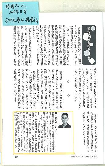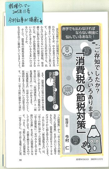 2005/10/21 月刊経理ウーマンにて執筆 「消費税の節税対策」 - (株)研修出版刊 月刊経理ウーマン平成17年11月号 -