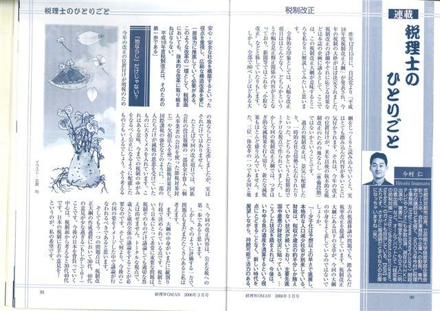 2006/3/2 「税理士のひとりごと」 今度の税制改正は、これからの来るべき抜本税制改正への地ならしであると思います。