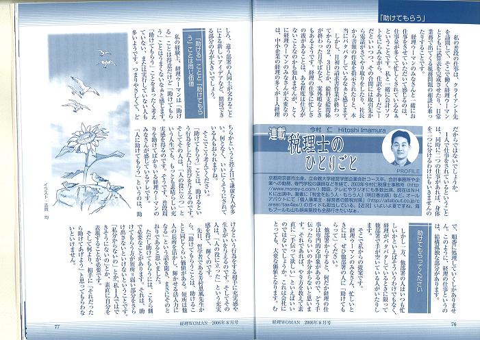 2006/7/26 「税理士のひとりごと」 「助けてもらう」 - 株式会社研修出版刊 月刊経理ウーマン2006.8月号 -