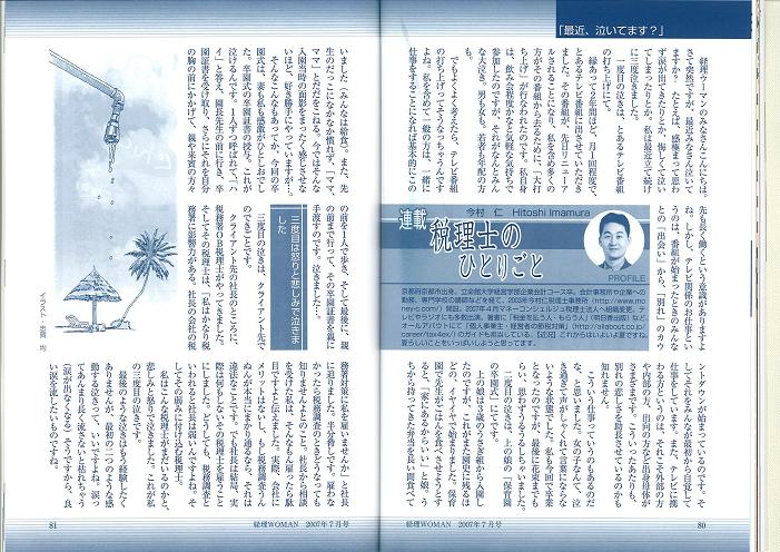 「最近、泣いてます?」 税理士のひとりごと - 株式会社研修出版刊 月刊経理ウーマン2007.7月号 -