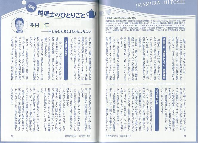 「何とかしたるは何ともならない」 税理士のひとりごと 経営者がこれらの悩みを抱えているときに、甘いささやきを言って近寄ってくる輩が時々います。これは本当に要注意です。中には確信犯的な人もいますが、多くは自分の利を求めてその悩んでいる経営者や会社を利用しようという考えの人たちです。こういう人たちは、法律的には何ら悪いことはしません。ただ結果的に後になって、「あのとき頼ってしまったばっかりに…」と後悔することがあります。