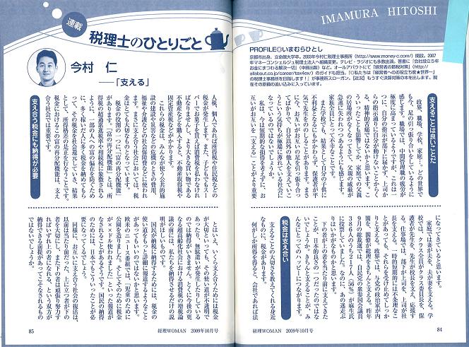 「支える」 税理士のひとりごと 政治、職場、学校、家族、どの世界でも今、足の引っ張り合いをしているように感じます。職場では、管理職の疲労が極度に高まっていることがありますが、これは1つに、自分の指示が部下に届かず上司からの指示通りに自分が動けないことからくる、精神的苦痛ではないかと思います。こういったことも影響してか、家族での父親の居場所がなくなってきて、父親の威厳が急速に失われつつあるようにも感じます。家族全員にとって不幸なことです。また学校でも、結果として自分の子供に不利益となるにもかかわらず、保護者が平気で先生をののしることがあります。まさに今、お互いがお互いの足を引っ張り合ってばかりで、自分以外の他人を支えていこうという気持ちが極端に薄れている社会になっているのではないでしょうか。