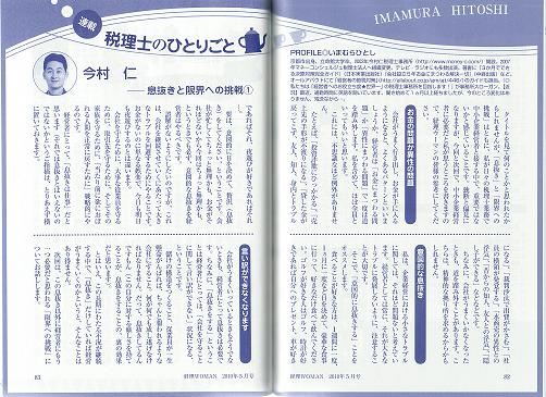 「息抜きと限界への挑戦1」 税理士のひとりごと タイトルをみて何のことかと思われたかもしれませんが、「息抜き」と「限界への挑戦」はともに、私が日々の税理士業務で中小企業経営者と接する中で、重要ではないかと感じていることです。独断と偏見になりますが、今回と次回で中小企業経営者に必要だと私が思うところを書きますので、経理ウーマンの皆様の参考にしてください。