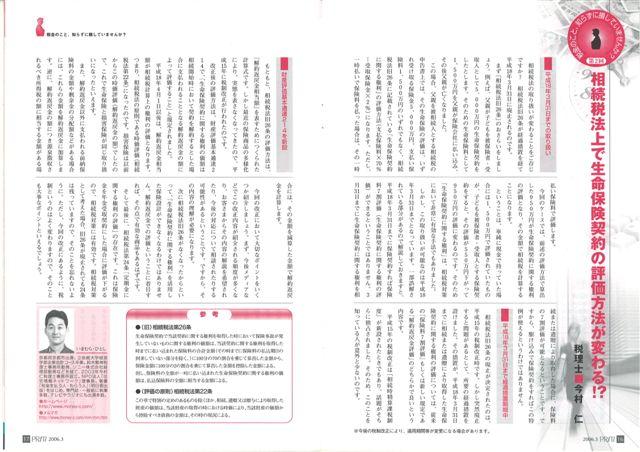 2006/3/2 月刊「PRITI」にて連載開始 「相続税法上で生命保険契約の評価方法が変わる!?」 - 社団法人生命保険ファイナンシャルアドバイザー協会刊 PRITI(プリーティ) 平成18年3月号より連載開始 -