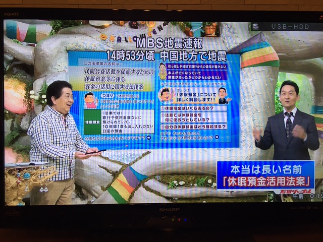 毎日放送「ちちんぷいぷい(月曜~金曜13.55~17:50)」「石田ジャーナル」コーナーにて、「休眠預金活用法」について20分ほど生出演しました。