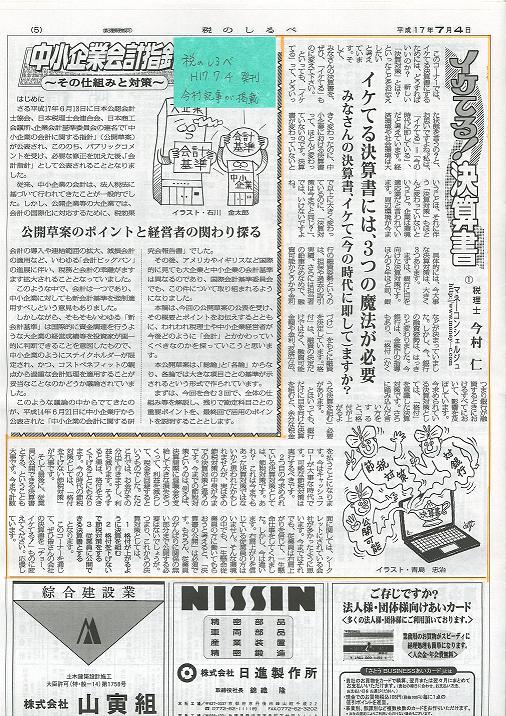 2005/7/5 週刊「税のしるべ」にて連載開始しました。 「イケてる!決算書」 - 大蔵財務協会刊 週刊税のしるべ平成17年7月4日号 - 一覧に戻る