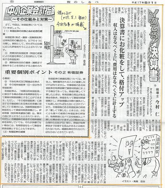 2005/8/1 週刊「税のしるべ」にて連載開始しました。 「イケてる!決算書-5」 - 大蔵財務協会刊 週刊税のしるべ平成17年8月1日号 - 一覧に戻る
