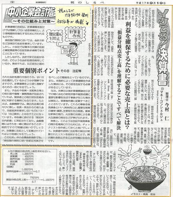 2005/9/24 週刊「税のしるべ」にて連載開始しました。 「イケてる!決算書-11」 - 大蔵財務協会刊 週刊税のしるべ平成17年9月19日号 - 一覧に戻る
