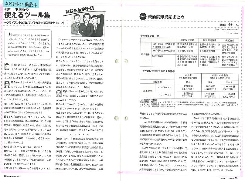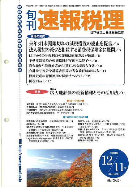 2005/12/12 旬刊「速報税理」にて連載開始 「参謀役税理士(S・Z)藍ちゃんが行く!-4」 - ぎょうせい刊 旬刊速報税理 平成17年12月11日号 -