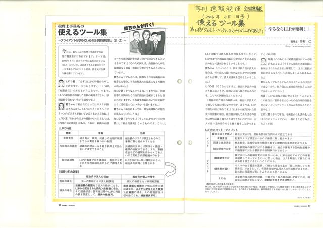 2006/2/12 旬刊「速報税理」にて連載開始 「参謀役税理士(S・Z)藍ちゃんが行く!-6」 - ぎょうせい刊 旬刊速報税理 平成18年2月1日号 -