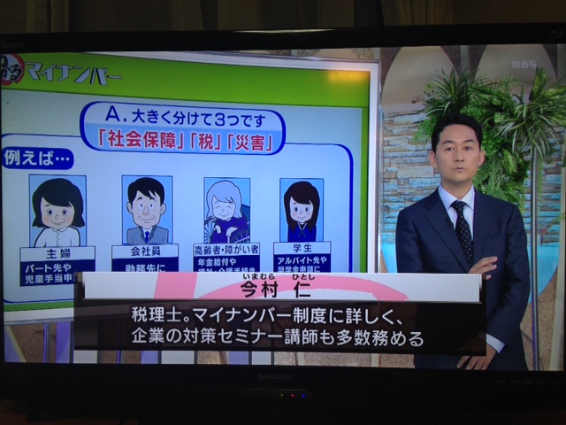 毎日放送「VOICE(月曜~金曜18.15~19:00)」にて、「マイナンバー」について、「通知カード到着後どうしたらいいの?」というような内容で、解説をさせて頂きました。