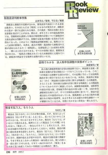 月間税理2005年5月号に、「税金を払う人・もらう人」のブックレビューが掲載されました。 |